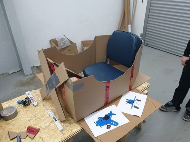 In den heiligen Hallen der Firma "AirWorkx Customs" durften wir uns dank des Inhabers Danny L. Tag und Nacht von der Ideenfindung bis zur Fertigstellung handwerklich austoben, lackieren und airbrushen. Stan Schäfer konstruierte aus unserem Kartonagen-Prototypen ein 1:1 Holzmodell, welches dann optisch an ein "altes" Flugzeug angepasst wurde. Ein tolles Projekt mit tollen Menschen und sensationeller Unterstützung.